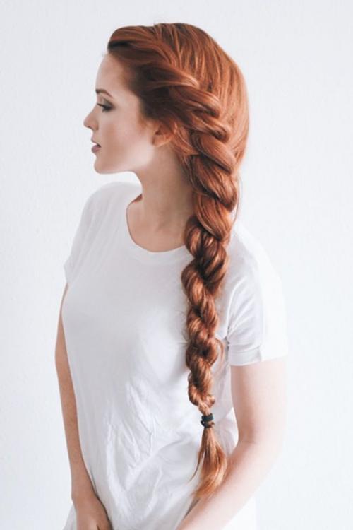 - Зафиксировать косу можно тонкой силиконовой резинкой, соответствующей цвету волос.