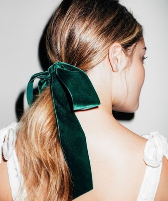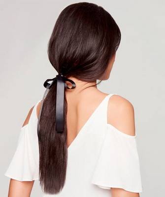 Чтобы получить элегантный аккуратный образ, уберите концы ленты под основание хвоста. Более кокетливый вариант получится, если завязать ленту бантиком.