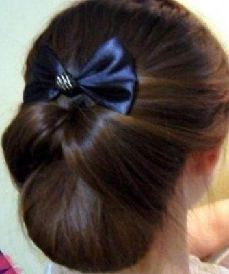 Самый классический вид конкурсной прически для спортивных бальных танцев, который подходит одновременно и для латиноамериканской, и для европейской программы.