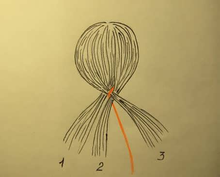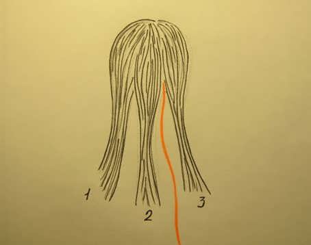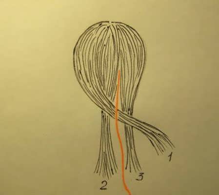 - Волосы разделяют на три равные части.