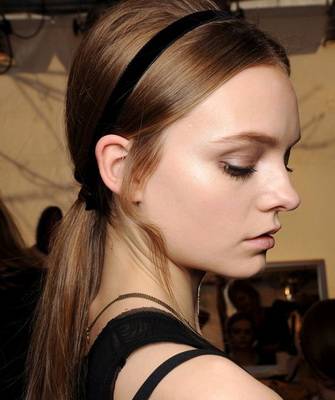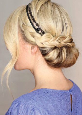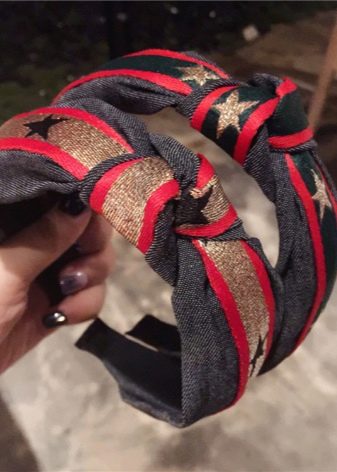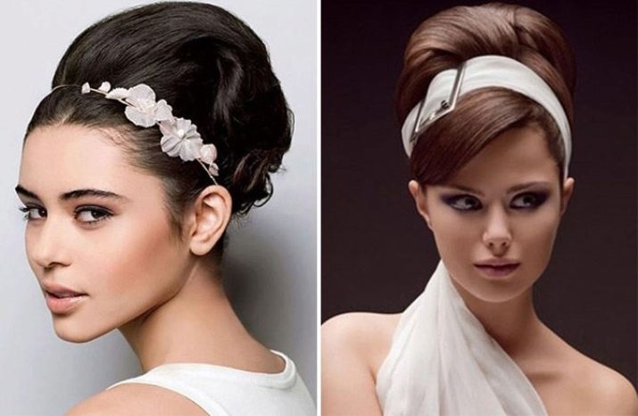 Для визуального увеличения лба, повязку носят по линии роста шевелюры. Высокий хвост или пышная укладка дополняют картину. Иногда пряди собираются назад.