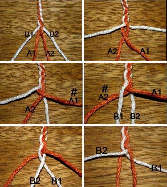 - Добавляем волосы ко второй пряди, пропускаем ее под четвертой и накладываем на третью.