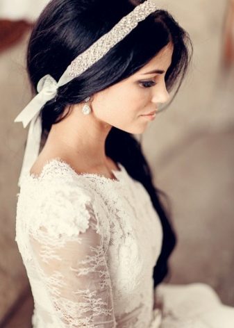 Если вы применяете тонкие ленточки, повязывать их следует выше области лба. Такие модели не могут держать прическу, поэтому для поддержания конструкции используются невидимки и другая атрибутика.