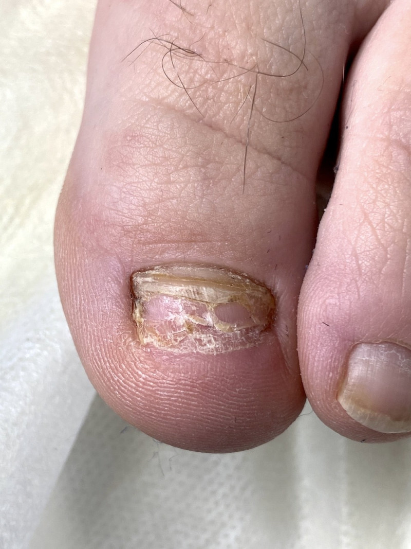 - Грибок, когда наблюдается очевидная шероховатость, сильное расслоение внешней стороны ногтя, утолщение по типу подногтевого гиперкератоза. Дерматолог или миколог на приеме подскажет: как правильно проводить лечение.
