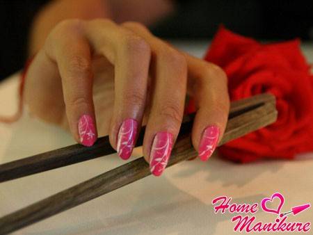 После этого на ногти наносят специальное вещество с ультрафиолетом, поскольку без данного препарата держаться рисунок на ногтях не будет.