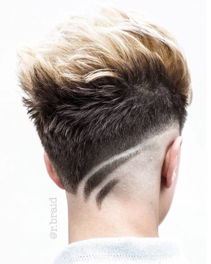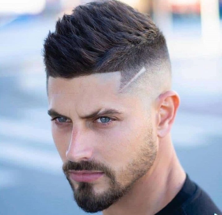 На макушке, как правило, мастер выполняет полоску, имитирующую пробор или небольшие молнии. Часто мужчины выбирают очень смелые варианты — прическу с выбритым на макушке крестом или другой картинкой. Конечно, при желании от столь креативной прически можно быстро избавиться, но нужно понимать, что выглядит она довольно странно для обычной жизни.