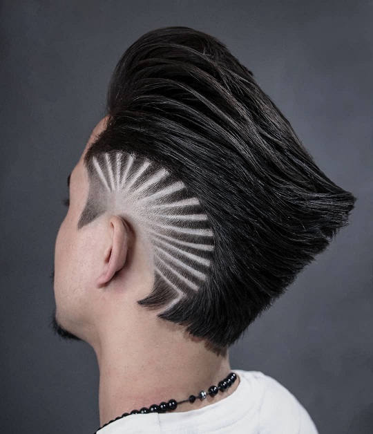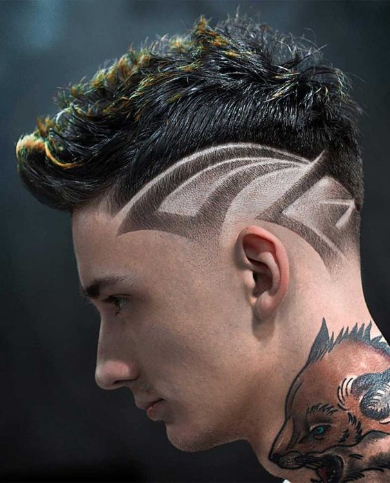 Виски чаще всего используются для рисования полосок, молний и других геометрических фигур. Конечно, лучше выбрать соответствующую стрижку, где боковые зоны будут иметь укороченную длину по сравнению с макушкой.