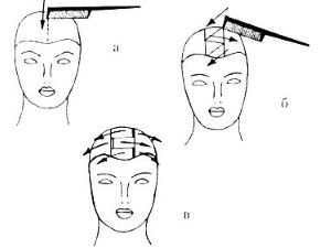 - Чертят следующую линию сложной фигуры, прядку отводят в противоположном направлении.