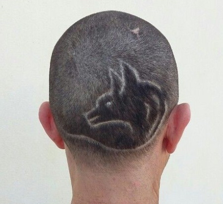Мужской затылок — полотно, позволяющее создать самый большой рисунок. Именно здесь создаются абстрактные картины, создаются звериные принты. Но и лаконичный узор, помещенный на краю линии роста волос будет смотреться стильно и креативно.