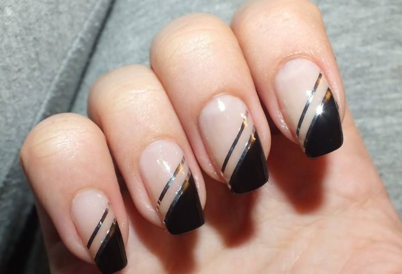 Важное условие, чтобы полосы были четкими, так как размытый маникюр не приведет к визуальному эффекту