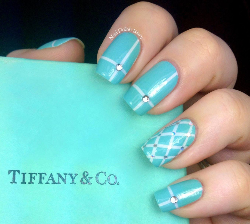 Фото 2. Этот интересный маникюр с белым и бирюзовым лаком делается с помощью акриловых красок и соли. Сначала ногти покрываются белым матовым лаком. Затем нужно нанести немного бирюзовой акриловой краски на ногти и посыпать ее морской солью. Когда краска высохнет, уберите соль с ногтей и аккуратно помойте руки. Нанесите топовое покрытие.