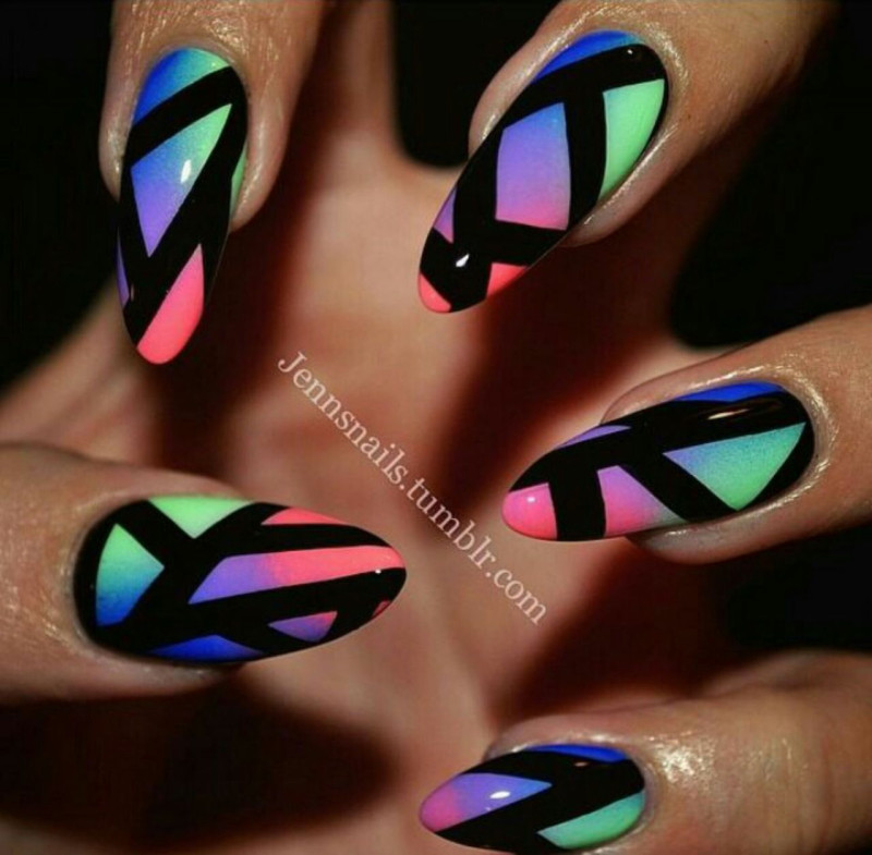 Дизайн ногтей с геометрическим узором подойдет на любую длину и форму ногтей. Вариантов дизайна много, от минималистических точек, до прорисовки сложными орнаментами. Цвет маникюра может быть любым — прозрачная основа, классические цвета или яркие летние неоновые тона. Эффектный нейл арт — это использование контрастных цветом, которые подчеркивают геометрию на ногтях.