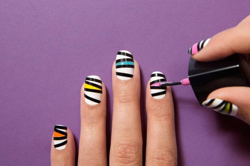 Девушки настолько изобретательны, что используют для создания необычных нейл-артов без преувеличения все что найдется под рукой. Вот и с геометрическим маникюром они нашли выход, используя обычный скотч.