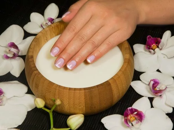 Устранить трещины и пятнышки, вернуть ногтю гладкость помогут ванночки с молочными продуктами.