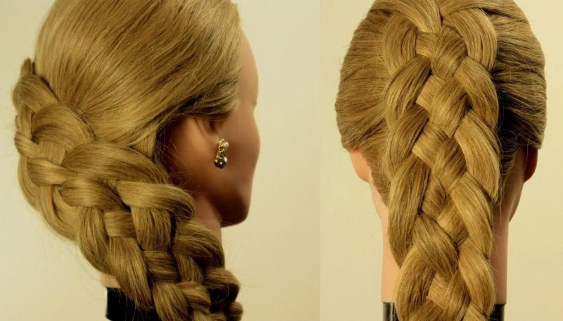 Для плетения мало трех прядок. Для ее реализации требуется с каждой стороны добавлять тонкие пряди. Стильная прическа получается: