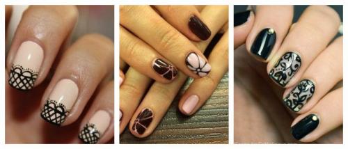 Простые узоры на ногтях, нарисовать которые под силу любой женщине, независимо от её художественных способностей, получаются с помощью обрезков кружева. Выполнить такие смогут даже начинающие. Ведь все, что нужно – это подобрать интересные кусочки кружева. Технология нанесения ажурного орнамента такова: