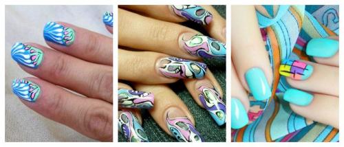 В домашних условиях можно использовать акриловые краски. Они удобны в применении, так как их можно смешивать и получать необычной красоты оттенки. Акриловые краски выглядят на ногтях очень ярко и броско. С их помощью можно рисовать все что угодно. Интересные варианты можно посмотреть в интернете. Существует масса различных