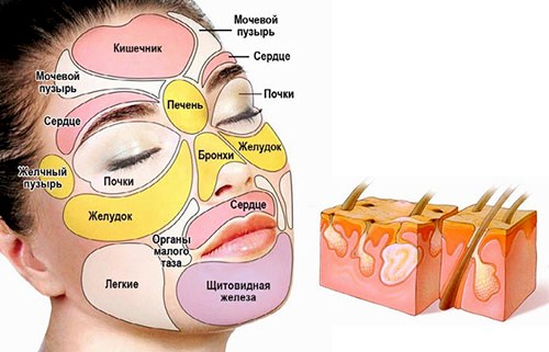 Согласно утверждениям медиков, каждый участок на лице отвечает за определённый внутренний орган. И если в его работе происходит сбой — в этом месте появляются воспаления, которые начинают болеть, нарывать и распространяться в рамках своего ореола. Не устранив первопричину, нельзя избавиться от высыпаний.