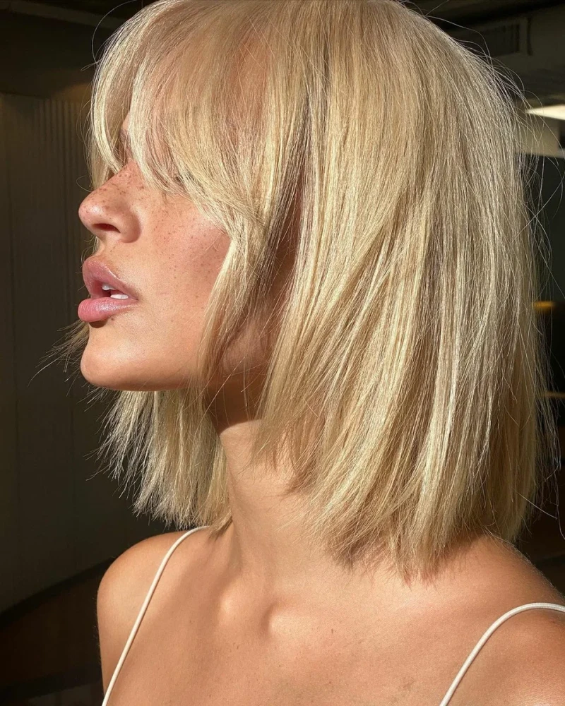 Все варианты пшеничного могут красиво дополнить серые глаза. Локоны холодного подтона выгодно подчеркнут их естественную красоту.