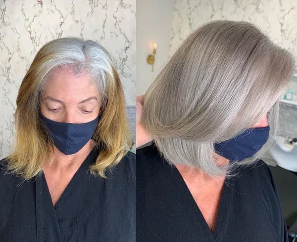 - Совмещенная техника (например, окантовка там, где больше седины, и классика на оставшуюся часть шевелюры).