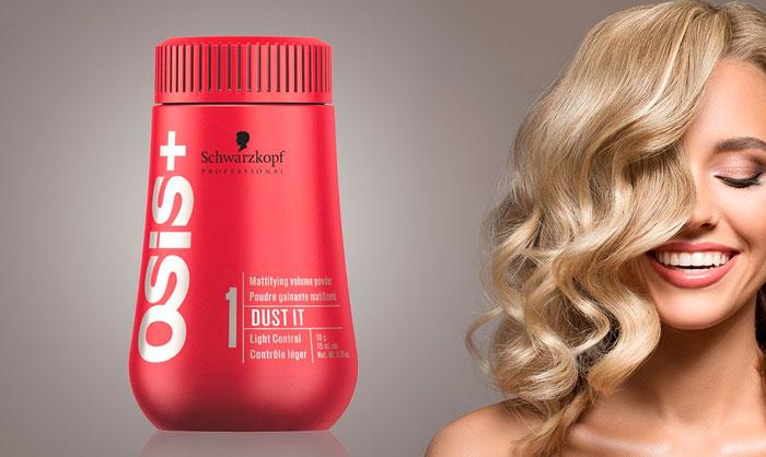 Пудра с моделирующим эффектом Dust It от OSiS+. Пудра имеет замечательный матовый эффект на волосах. С её помощью можно хорошо выделять как отдельные пряди, локоны, так и укладывать всю причёску. Производители заявляют о том, что при помощи этой пудры можно легко контролировать степень фиксации. Чем больше вы используете пудры, тем сильнее становится эффект фиксации.