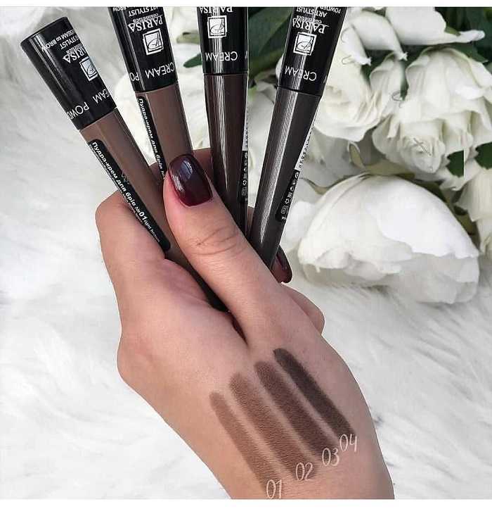 Некоторые из них состоят из двух пигментов, различающихся на один-два тона. Такие средства используются, если необходимо не только подкрасить брови, но и добавить несколько волосков более светлого оттенка в области переносицы.