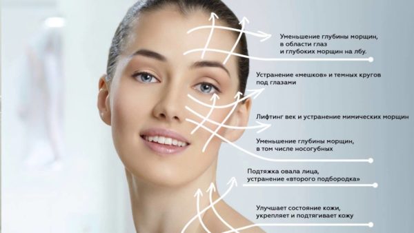 - предотвращение гравитационного старения, разглаживание складок, морщин любой глубины;