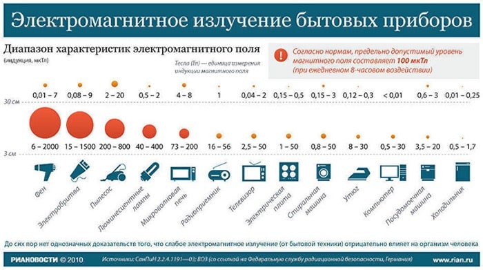 Предельно допустимый уровень электромагнитного излучения, который не должен оказать негативного влияния на организм человека, составляет 10 мкВт/кв.см.