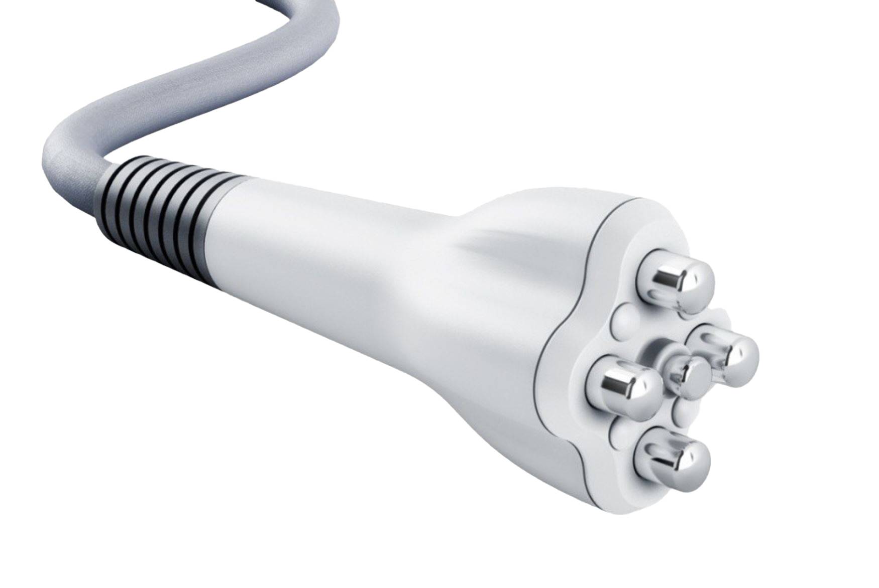 В устройстве противоположные электроды имеются в количестве сорока девяти тончайших игл с золотым напылением, что помогает внедрять их необходимый уровень глубины и варьировать объемное действие. Так удалось объединить достижения фракционной rf-терапии и микроиголок. Инфини позволяет использовать микроиглы безболезненно и уменьшает натяжение. За исключением кончика вся игла покрыта особым силиконом.