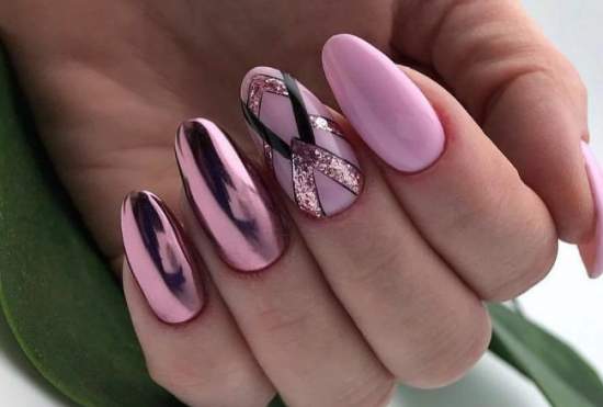 Это самые популярные втирки для маникюра в 2019 – 2020 году. Но и другие разновидности пудры, такие как «Хамелеон» или «Меланж» также можно использовать в сочетании с розовым покрытием.