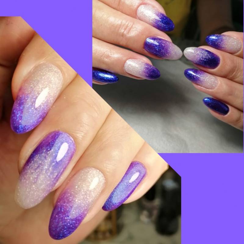 на ноготках получается плавный переход цвета.