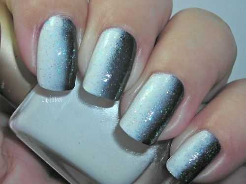 Еще вариант – обойтись только градиентом, без покрытия ногтя блестящим гель лаком целиком. Этот вариант особенно хорош для лаком со средней и низкой плотностью блесток.