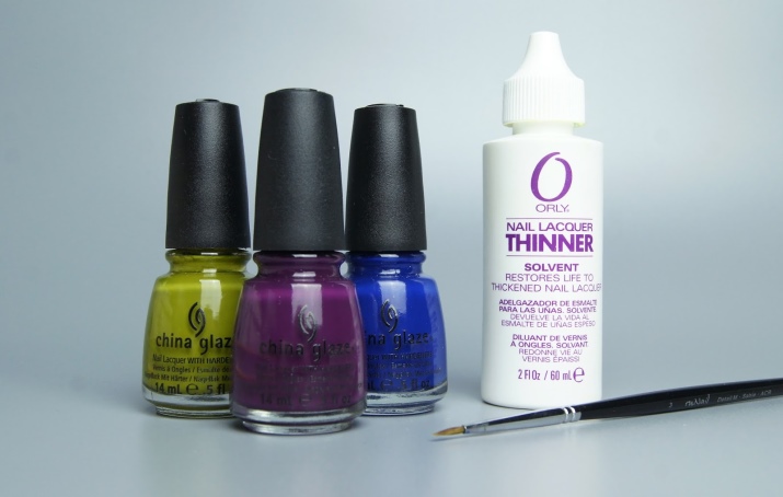 При покупке лака следует отдавать предпочтение дорогим брендам, во флакончике должны присутствовать металлические шарики. Наиболее безопасным и эффективным способом разбавления лака считается использование специального растворителя