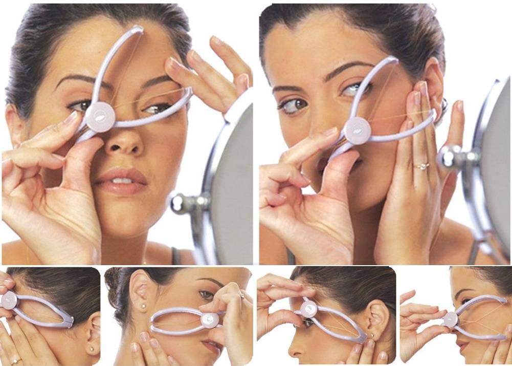 Если вы не желаете удалять выбивающиеся из линии роста бровей волосы нитью, рекомендуем приобрести приспособление, предназначенное для тридинга. Напоминает оно рогатку с отверстиями, через которые пропущена закрученная в центре нитка. Также в продаже имеются устройства в форме секатора и ножниц. Принцип их работы одинаков – ниточка схватывает и выдергивает волос. Преимущество магазинной конструкции перед обычной нитью состоит в том, что готовое приспособление увеличивает скорость эпиляции. Это позволяет девушкам удалять волосы с любых участков тела.