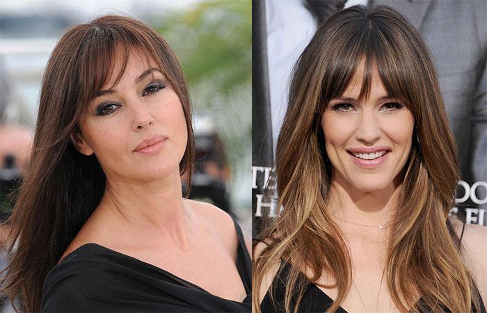 Многочисленные варианты исполнения и укладки редкой челочки демонстрировали Моника Белуччи и Дженнифер Гарнер, Кристина Хендрикс, Рейчел МакАдамс, Эмилия Кларк и др.