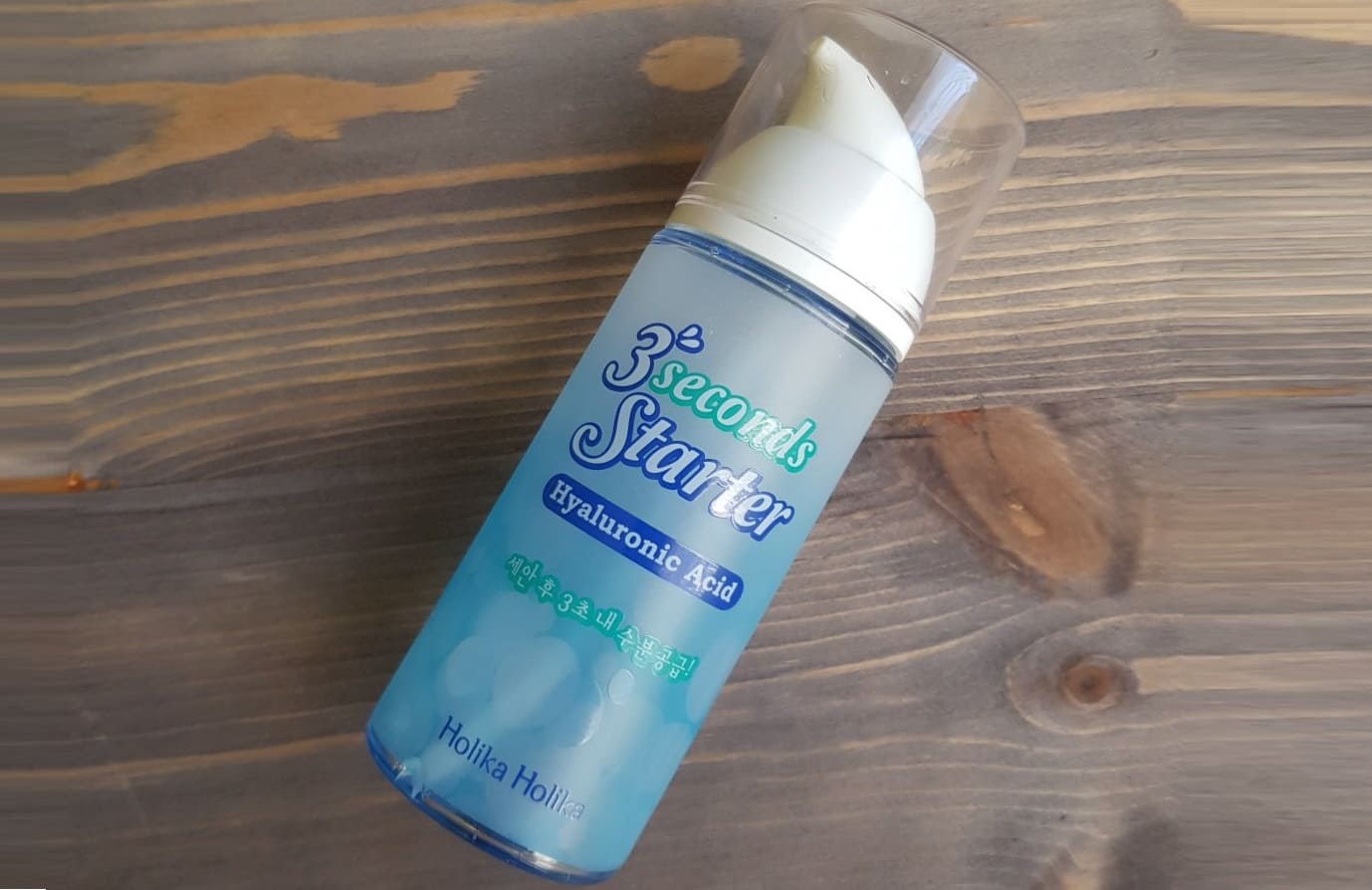 Следующий косметический препарат корейского происхождения. Продукт небезызвестной марки Holika Holika — сыворотка для лица 3 Seconds Starter с гиалуроновой кислотой.