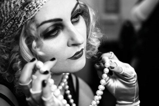 Важно, чтобы платье и прическа были так же заимствованы из 20-х годов