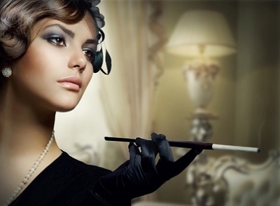 Если за основу выбран стиль 20-х годов, то на веках размещаются дымчатые тени. Уместен такой вариант будет на вечеринках или модных мероприятиях