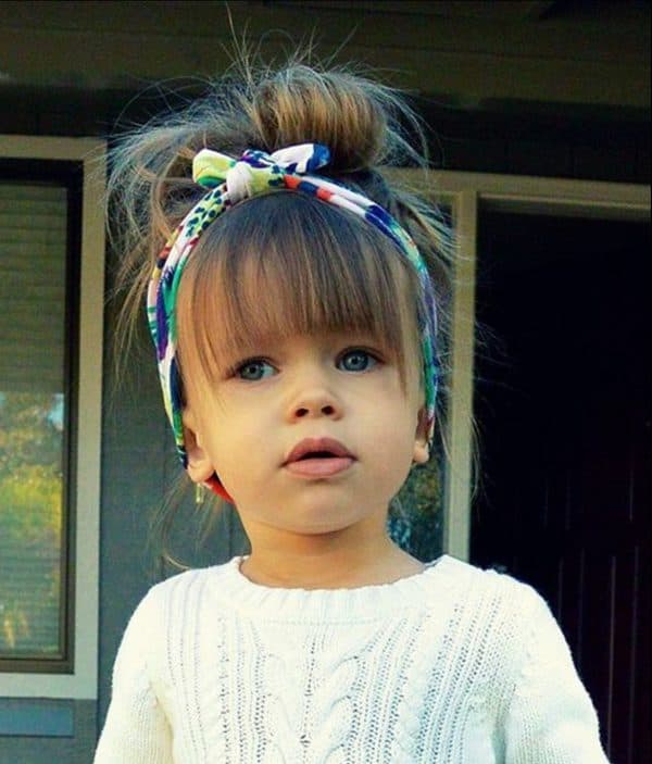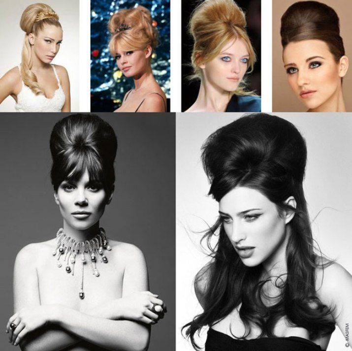 - Элегантность 60-х — это бабетта. Объемные начесы оставьте для взрослых решений, а нежные детские локоны укладывайте на специальный «бублик». Прическу зафиксируйте лаком. Ее можно дополнить челкой.