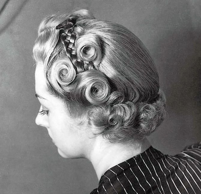 В 30-е годы популярной обрела прическа «каре» и легкие закрученные волны снизу, украшенные повязками и ободками. В 40-е появилась мода на игривые пин-ап– прически с идеально закрученными локонами–валиками. Также на протяжении нескольких десятилетий не выходили из моды объёмные начесы, к которым добавлялись яркие, завязанные бантом, платки или цветные ободки.