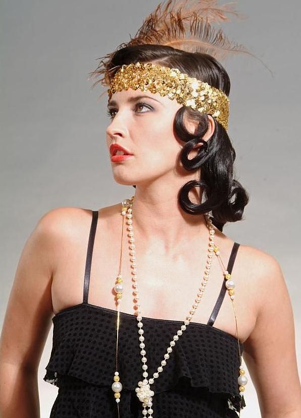 - Женственность 30-х понравится вашей дочке. Главное — позаботиться об украшении. Купите или сделайте сами повязку с перьями или бусинами. Накрутите волосы девочке и наденьте на голову повязку.