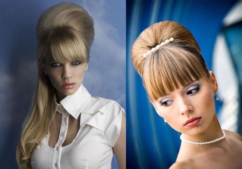 - Характерными будут считаться ролики из волос, кудри, пышные челки и различные начесы.