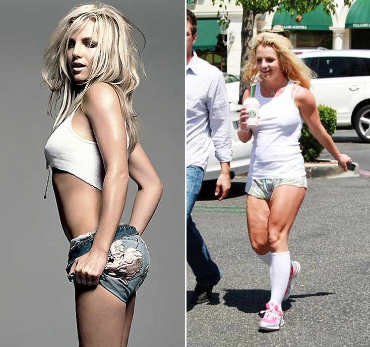 Еще одно фото Бритни, благодаря которому мы можем понять, насколько ее фигура неидеальна. Ее когда-то идеальным ножкам явно нужна физическая нагрузка, причем каждодневная. Также не мешало бы убрать дряблую кожу на руках и что-то сделать с уже заметно выступающим подбородком. Но все же в этом фото есть и плюс, благодаря ему мы видим, что на самом деле скрывают звезды за идеальной внешностью.