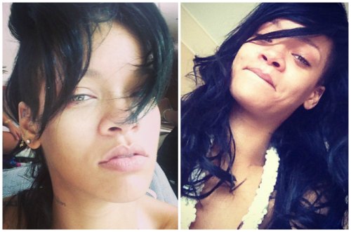 Есть и более естественные кадры, где Рианна без косметики выглядит будто наутро после бурной вечеринки. Спутанные волосы, сероватый оттенок кожи, тени под нижним веком. Вот это больше похоже на правду. Но и тут лицо знаменитости остается притягательным: Рианна без визажа очень красива.