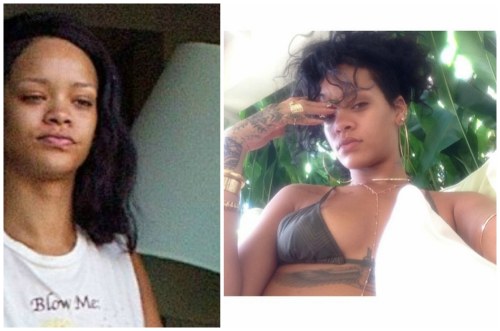 Рианна. Одна их первых селебрити, которая стала появляться на публике без макияжа. Хоть Рианна и обладает ровным тоном кожи и отсутствием морщин, все же ее внешность значительно отличается от той, которую мы чаще всего видим на таблоидах.