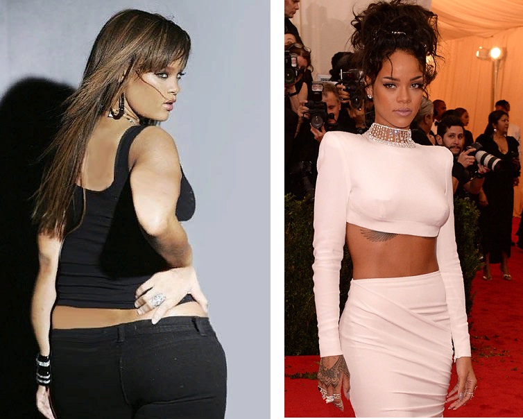Рианна – обладательница шикарного тела с «формами». Нет единого мнения о естественности ее бюста, и многие эксперты уверены, что звезда сделала увеличивающую маммопластику. Несколько лет назад Рианна растолстела, набрав почти 15 кг. Появившись в таком виде на вручении престижной музыкальной премии «Грэмми» в 2018 году, певица вызвала шквал критики в свой адрес. Видимо, «общественное порицание» возымело действие, и Рианна спешно похудела, вернув фигуру к прежним параметрам.