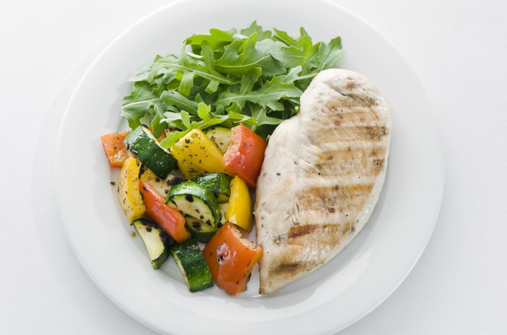 При этом важно растянуть 700-800 граммов отварного куриного мяса на весь день