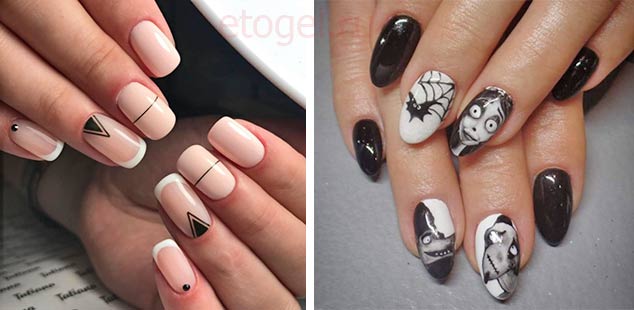 - Финальный штрих – черный лак, который должен расположиться в нижней половине ногтя по диагонали.
