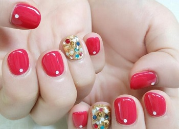 Модным трендом на сегодняшний день считается так называемый «лунный маникюр». Сделать его довольно просто. Достаточно выделить серебристым лаком у основания ногтя небольшой полукруг. Остальное свободное пространство можно заполнить любым цветом. Но рекомендуется сделать это при помощи лака темного оттенка. Как видите, рисунки на коротких ногтях в домашних условиях могут быть достаточно простыми. Если вы предпочитаете «французский маникюр», то можно использовать не только его классический вариант. Выделите кончики ногтей красным или черным лаком. Добавьте на безымянные пальцы по яркому контрастному стразу. Расположить его лучше по центру или же сбоку от цветной полоски. Чтобы украшение легло точно в задуманном месте, используйте специальную палочку или же деревянную зубочистку. Кончик предварительно смочите водой. Это позволит аккуратно поместить страз на ногте. Обязательно закрепите его прозрачным лаком или специальным покрытием, в противном случае страз долго не продержится. Рисунки на коротких ногтях должны визуально удлинять ложе, следовательно, их лучше делать вертикальными. Однако рисунок «горошек» также отлично подойдет для ногтей короткой и средней длины. Используйте лаки разных цветов. Это поможет сделать маникюр ярким и праздничным. Такой вариант отлично подойдет даже для вечеринки.