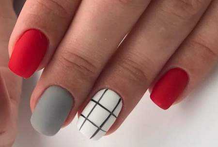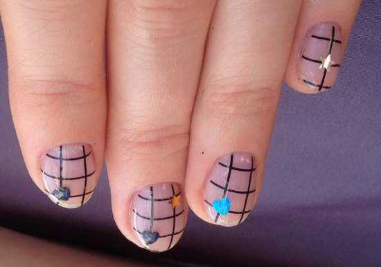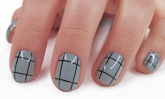 Еще одним легким способом создания дизайна считается рисование полосок лаком для ногтей или гель-лаком и тонкой кистью. Простым и стильным рисунком является клетка. Несмотря на то, что клетка – это всего лишь пересечение 4х прямых линий, с ней можно создать множество вариантов дизайна. К примеру, это может быть: